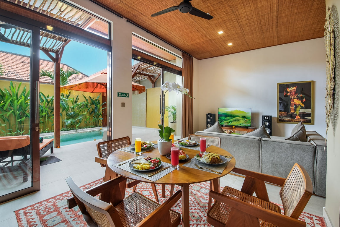 • The villa attendant is able to prepare and serve you the breakfast in the villa. You can choose based on groceries purchase or be charged IDR 145.000/person for American, Indonesian or Continental breakfast.