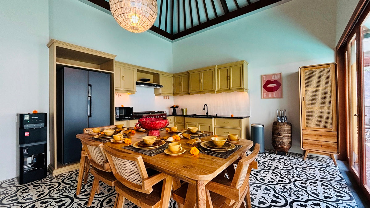 • The villa attendant Mrs. Debby is able to prepare and serve you the breakfast in the villa. You can choose based on groceries purchase or be charged IDR 145.000/person for American, Indonesian or Continental breakfast.