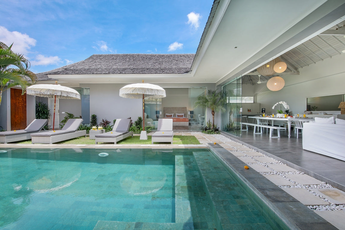 As you enter the property, you’re greeted by a private pool – the perfect spot for morning coffee in the sun, refreshing afternoon swims, or sunset cocktails after a day at the beach.